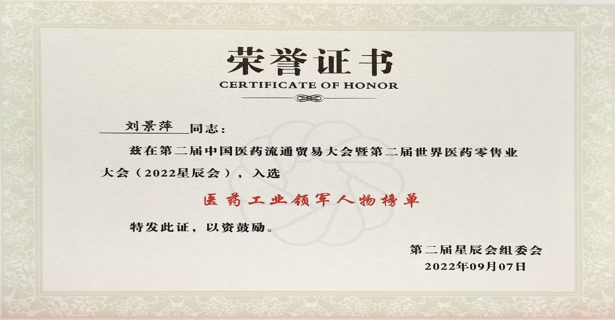 本次星辰会期间,AG庄闲斩获颇丰,获得多项行业奖项及荣誉。在开幕式上,刘景萍董事长荣获“医药工业领军人物”称号。
